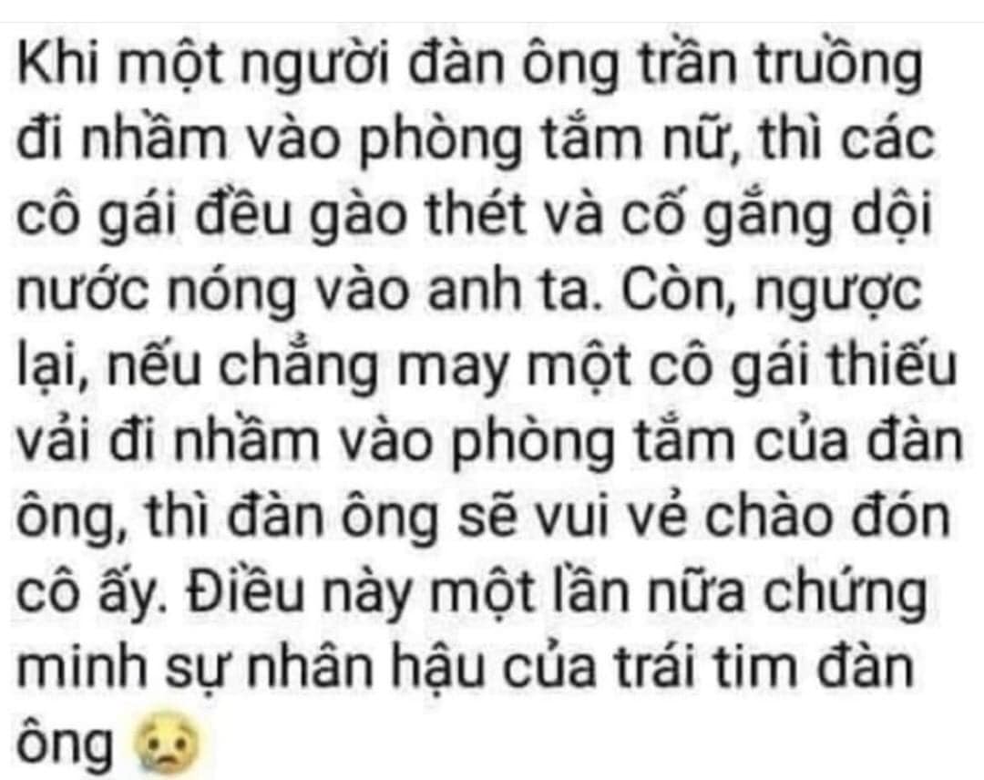 - Vậy thì hai chị còn may mắn hơn em. Chồng em lên giường chưa kịp làm cái gì hết là đã ngáy khò khò. Cũng như bất lực 100 phần trăm. Thiệt là chán mớ đời!